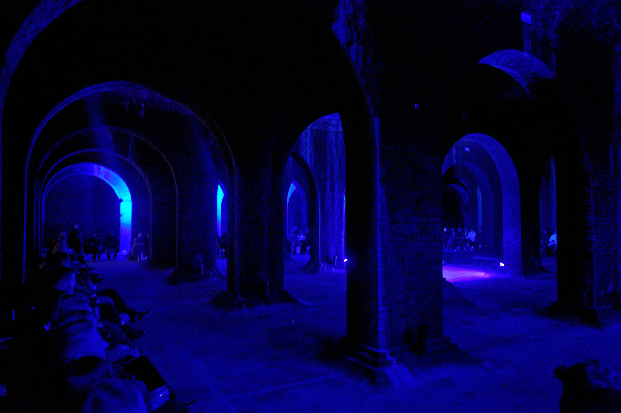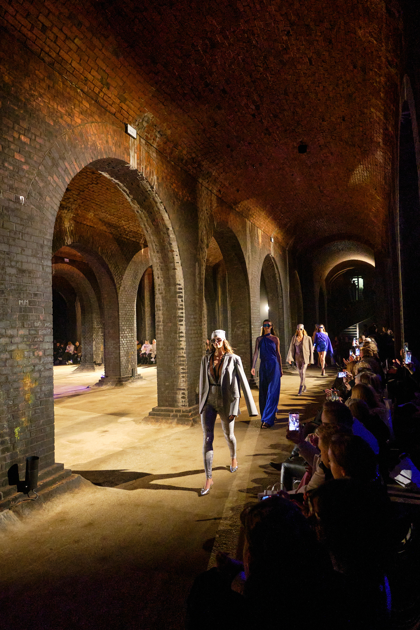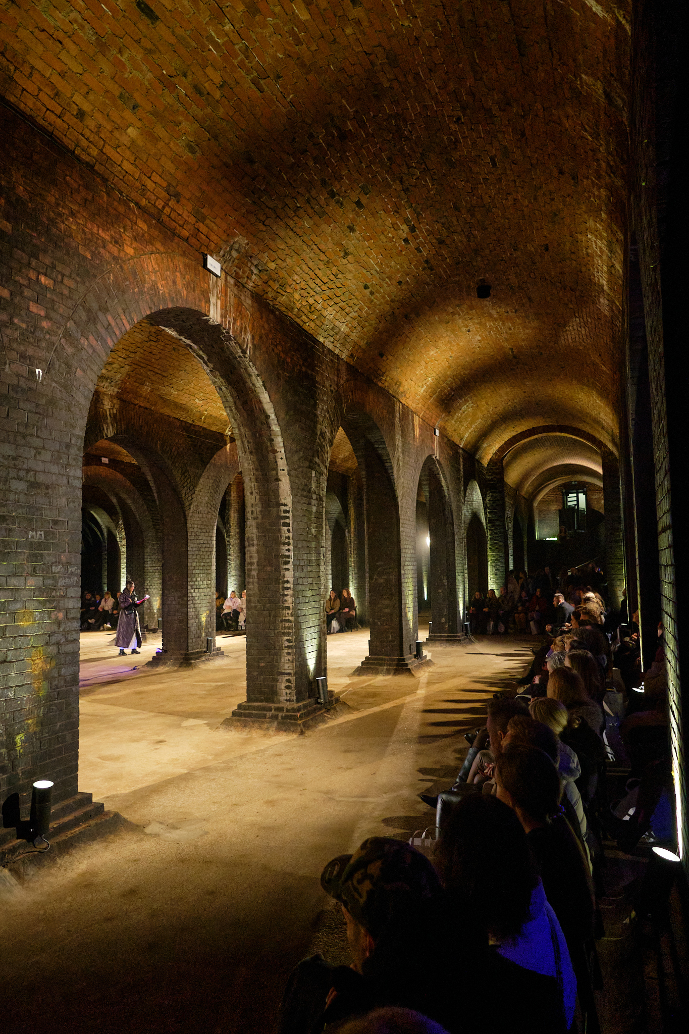 Na přehlídku jsem se skočil podívat, zajímalo mě jak se taková akce v Brně podaří a taky mám Vodojemy prakticky za rohem. A jak by řekl klasik “na Brno dobrý”. Vizuálně moc hezký, ty prostory tomu dávaly hodně, nasvícení se tam povedlo skvěle, procházející modely střídavě procházely světlem a tmou občas zcela ozářené světly reflektorů v členitém prostoru. Díky světlům z různých úhlů vytvářely siluety zajímavou stínohru. Asi polovinu jmen návrhářů / studií jsem znal, jejich rukopis je jednoduše rozpoznatelný, u několika dalších jsem se trochu ztratil, ale neva. Zkoušel jsem udělat pár fotek, ale na takové světelné podmínky jsem neměl techniku a fotit na mobil je v takové tmě bláznovství, tak jsem se snažil víc navnímat atmosféru.